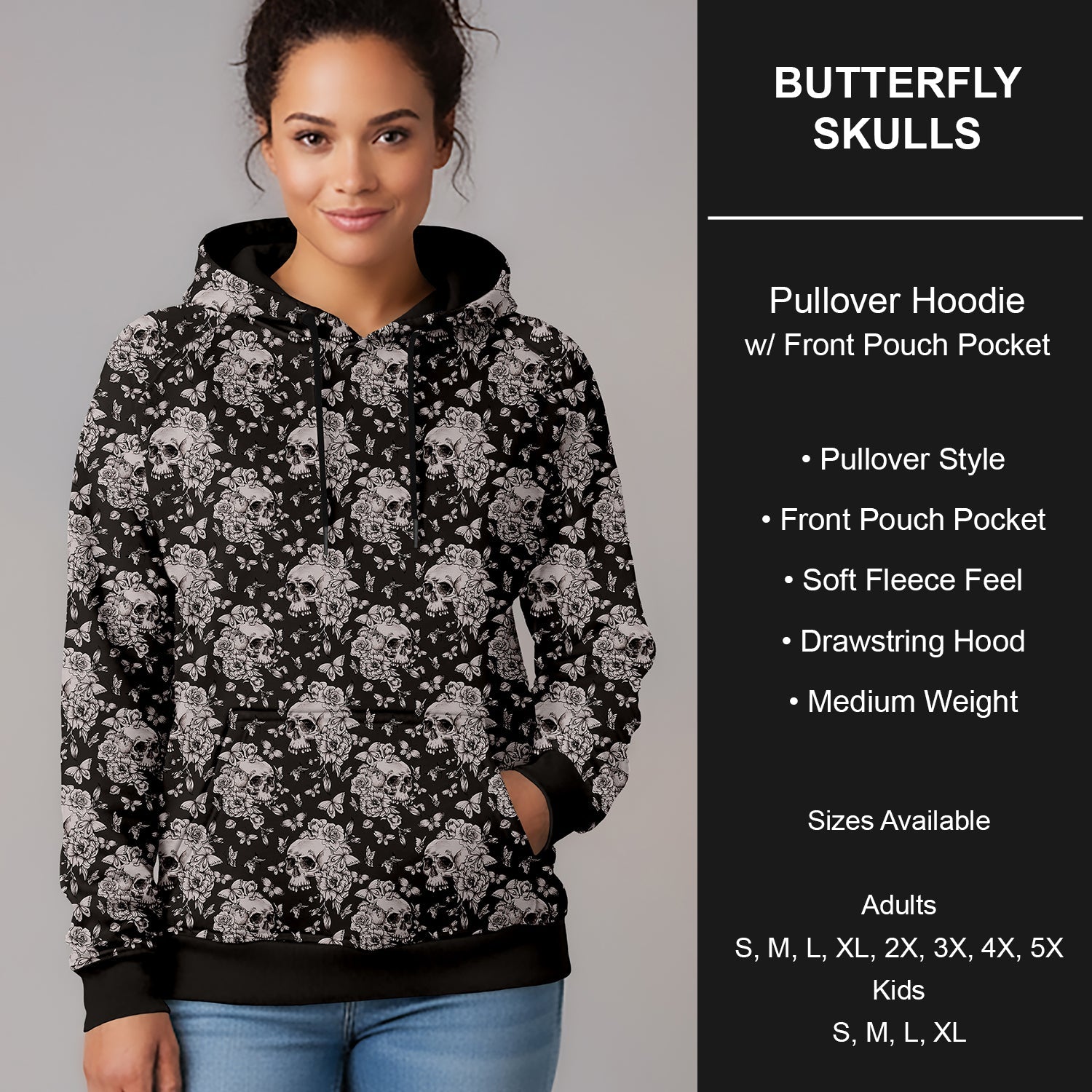 B266 - Preorder Butterfly Skulls Pullover Hoodie (Closes 12/17. ETA late Feb.)