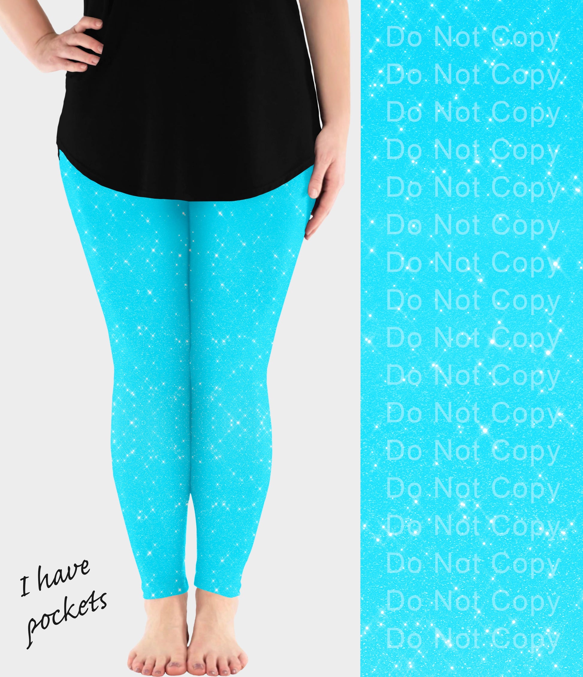 RTS - Bright Blue Sparkle Leggings w/ Pockets